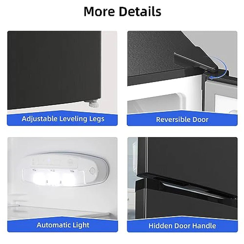 ✅ Humanized Design: The LED light design ensures you find supplies with ease even in the dark whenever you open the mini fridge door, saves you the trouble switching lights on and off at night. Adjustable balancing leg keeps the mini refrigerator steady on the uneven ground. The door seals are removable for thorough clean-ups. This mini fridge is highly customizable to be your own unique fridge.