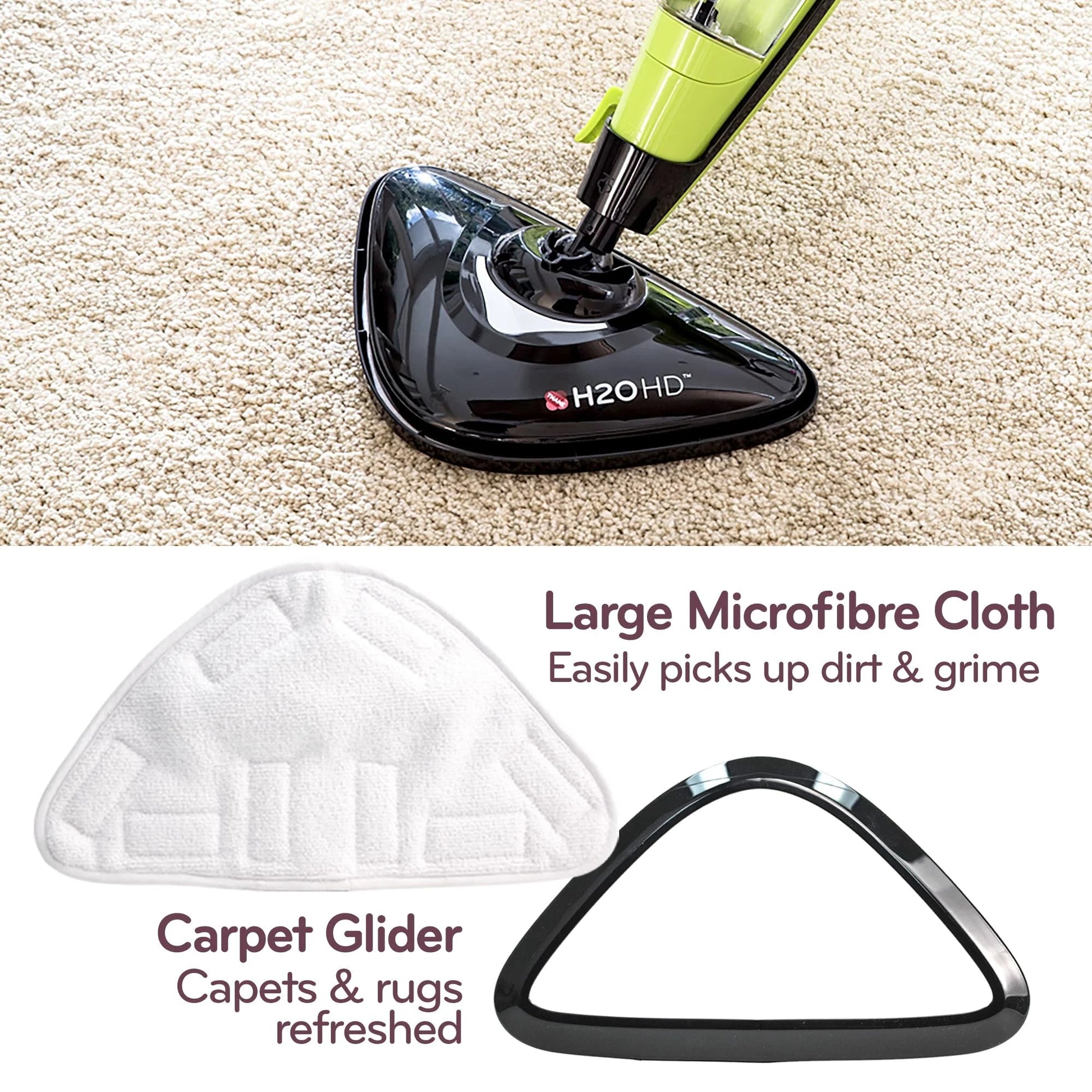 • WHAT’S IN THE BOX – 1 x H2O HD, 1 x Microfibre Mop Cloth, 1 x Carpet Glider, 1 x Duster Tool, 1 x Window Cleaning Tool, 1 x Angled Jet Nozzle, 1 x Nylon Brush, 1 x Brass Brush, 1 x Extension Hose, 1 x Super Absorbent Microfibre Cloth for Garment Tool, 1 x Super Absorbent Microfibre Cloth for Window Cleaning Tool, 1 x Water Filter