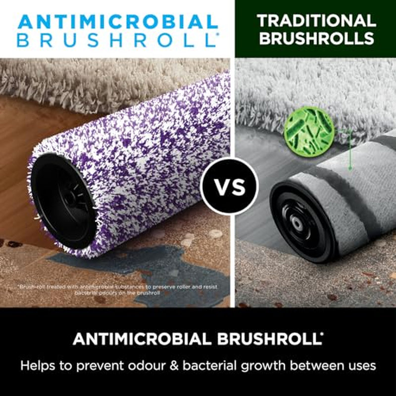 STARTS CLEAN, STAYS CLEAN: antimicrobial brush-roll* with self-cleaning system, (*brush-roll treated with antimicrobial substances to preserve roller and resist bacterial odours on the brush-roll)