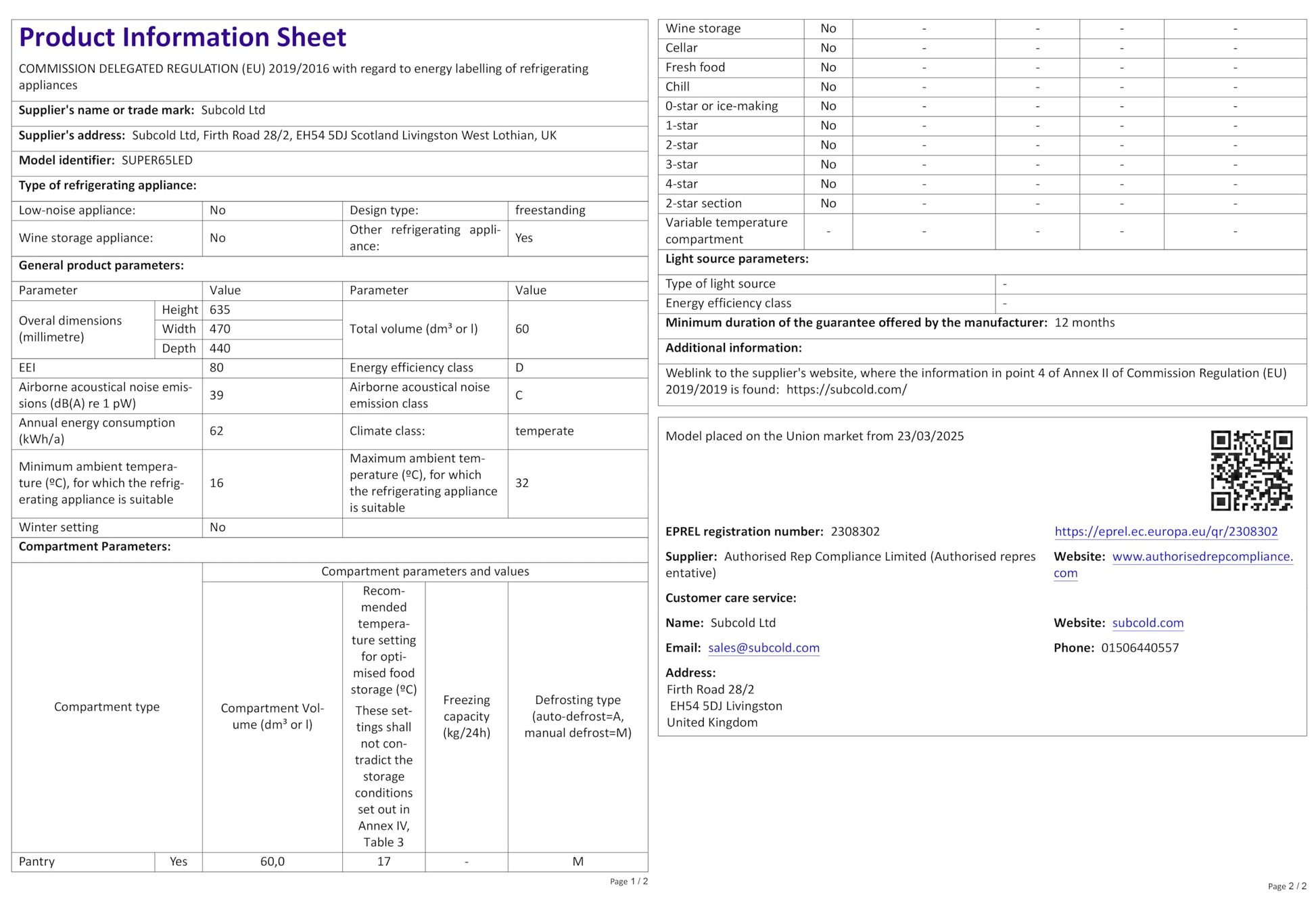 Super65 LED - Table-Top Fridge | 65L Beer, Wine & Drinks Fridge | LED Light + Lock & Key | Energy Efficient (Black)